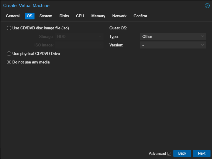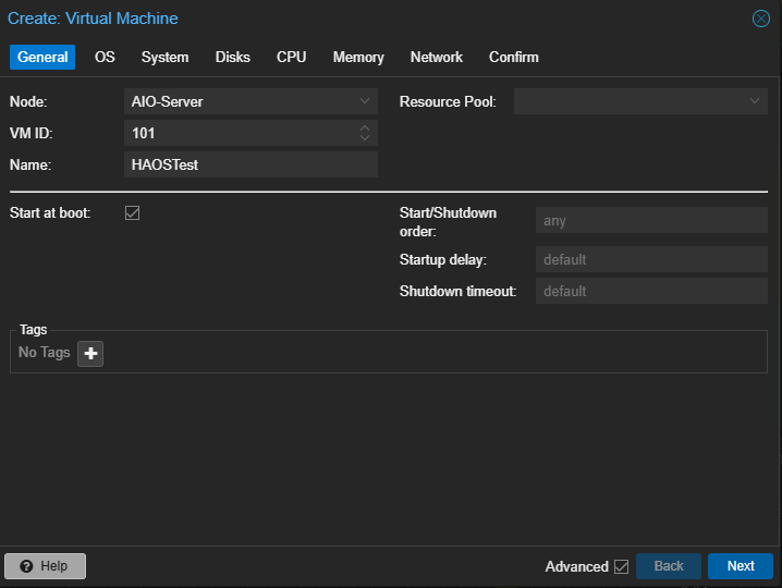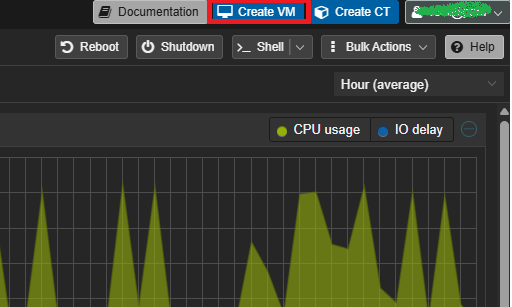 登录 Proxmox VE 控制台,在右上角点击新建虚拟机