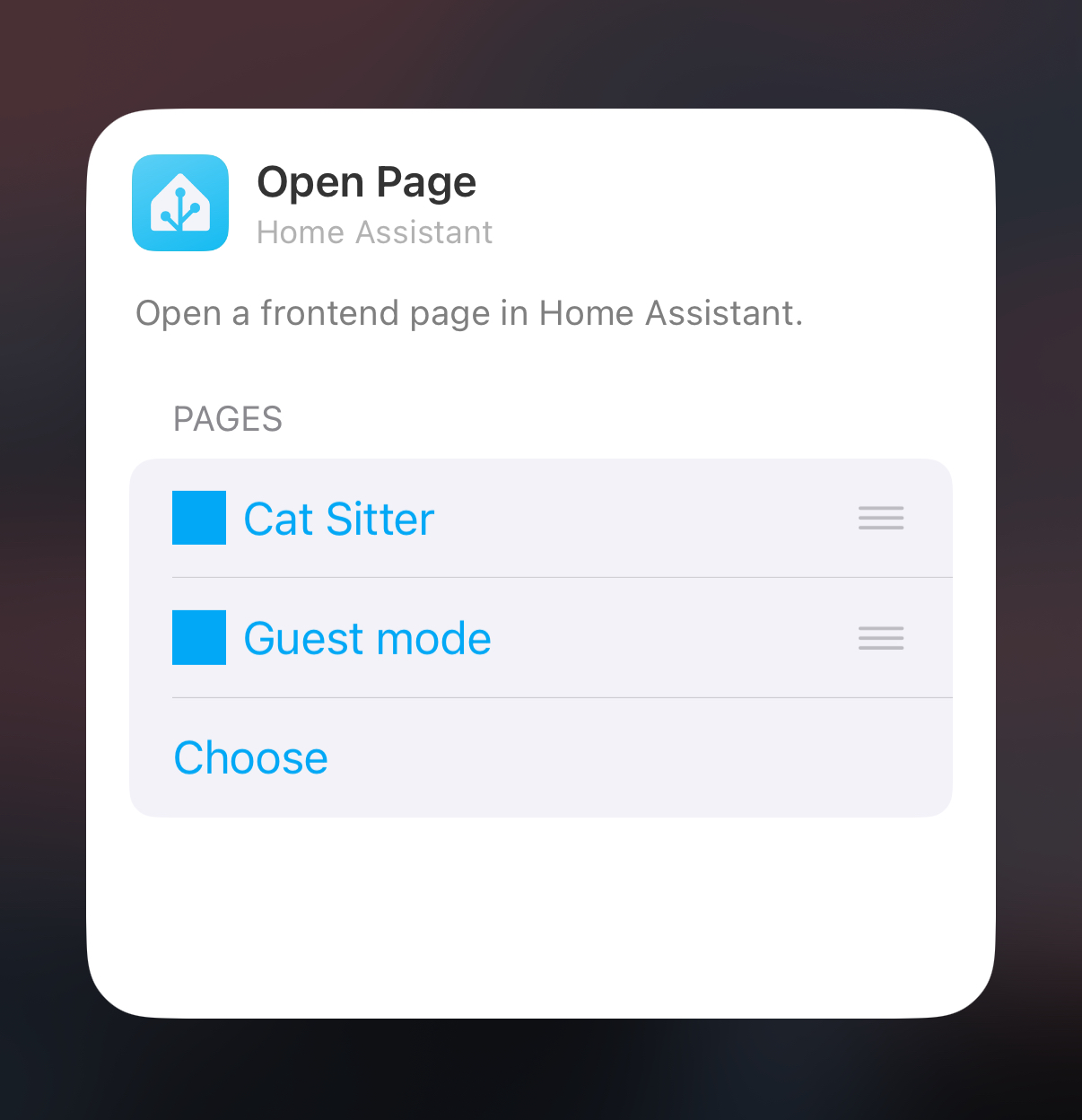 打开页面小部件允许您打开任何 Home Assistant 侧边栏页面。 可用于