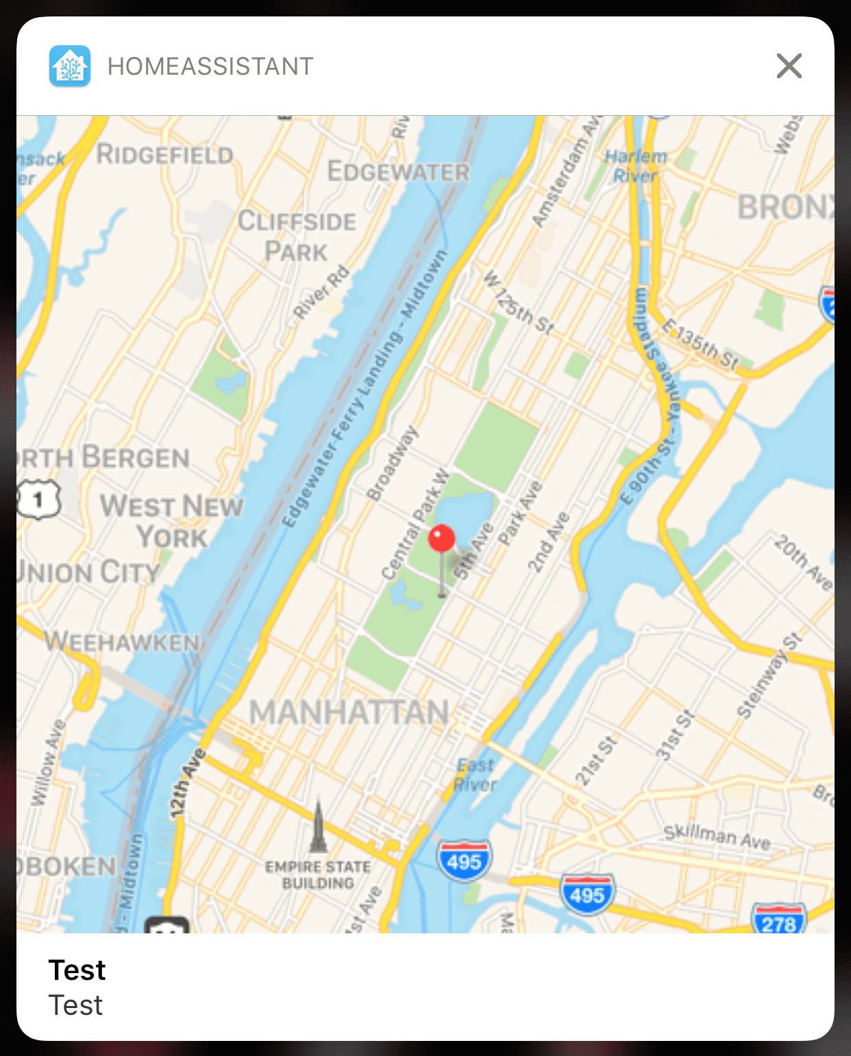 将显示一个居中的地图,在给定坐标处有一个红色图钉。