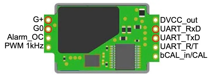 G+ 应连接到电源(支持的电压为 4.5 V 至 5.25 V),G0 连接到 GND 引脚