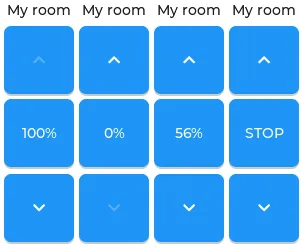 - label: text: "西" - button: id: but_cov_up_west width: 70 height: 68 widgets: - label: id: cov_up_west align: CENTER text: "\U000F005D" - button: id: but_cov_stop_west width: 70 height: 68 widgets: - label: id: cov_stop_west align: CENTER text: "\U000F04DB" - button: id: but_cov_down_west width: 70 height: 68 widgets: - label: id: cov_down_west align: CENTER text: "\U000F0045"这节省了大量的手动计算小部件位置的工作,否则需要使用 x 和 y 手动放置它们!您只需要确定小部件的通用宽度和高度,以便按您喜欢的方式在页面上分布。(下面的 MDI 图标文本 展示了如何使用自定义图标。)