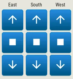 - label: text: "南" grid_cell_column_pos: 1 grid_cell_row_pos: 0 grid_cell_x_align: STRETCH grid_cell_y_align: STRETCH - button: id: but_cov_up_south grid_cell_column_pos: 1 grid_cell_row_pos: 1 grid_cell_x_align: STRETCH grid_cell_y_align: STRETCH widgets: - label: id: cov_up_south align: CENTER text: "\U000F005D" - button: id: but_cov_stop_south grid_cell_column_pos: 1 grid_cell_row_pos: 2 grid_cell_x_align: STRETCH grid_cell_y_align: STRETCH widgets: - label: id: cov_stop_south align: CENTER text: "\U000F04DB" - button: id: but_cov_down_south grid_cell_column_pos: 1 grid_cell_row_pos: 3 grid_cell_x_align: STRETCH grid_cell_y_align: STRETCH widgets: - label: id: cov_down_south align: CENTER text: "\U000F0045"