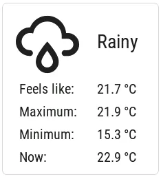 Section titled “天气预报面板”另一个依赖 Grid 布局的示例可以是显示 Home Assistant OpenWeatherMap 集成 预报的天气面板。