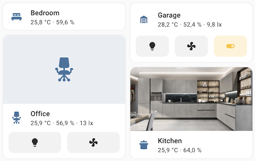 但这还不是全部,@zsarnett 还创建了一张全新的区域 Lovelace 卡片。它会使用你为该区域上传的图片,并自动填入分配到该区域中的设备实体。