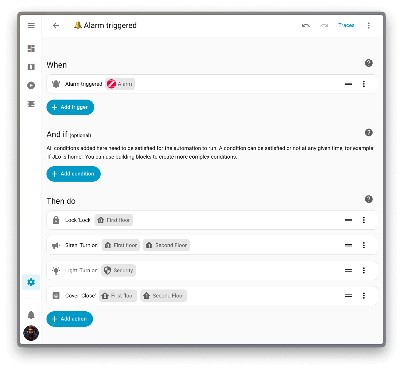 对于自动化爱好者来说,我们也在继续推进更“人性化”的触发器。这项功能可通过 Home Assistant Labs 启用,让你能用更容易理解的描述来创建自动化,而不是依赖技术性的状态变化,比如“按下按钮时”或“有人到家时”。