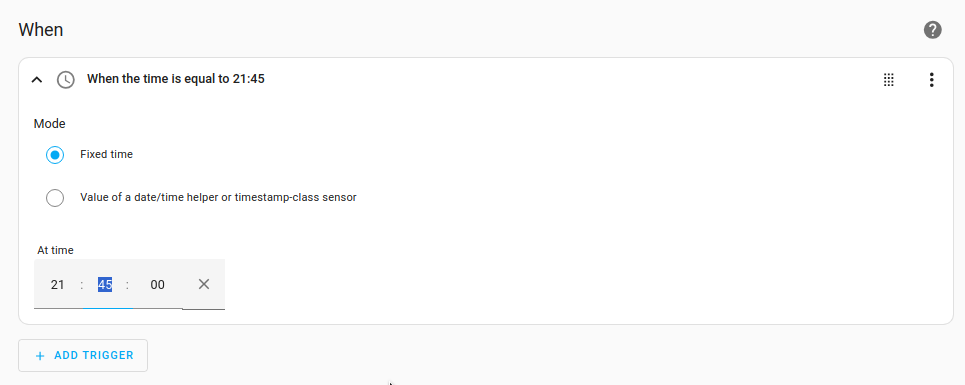 我们希望灯光在 21:45 开始变暗。这意味着我们需要一个由时间触发的自动化。