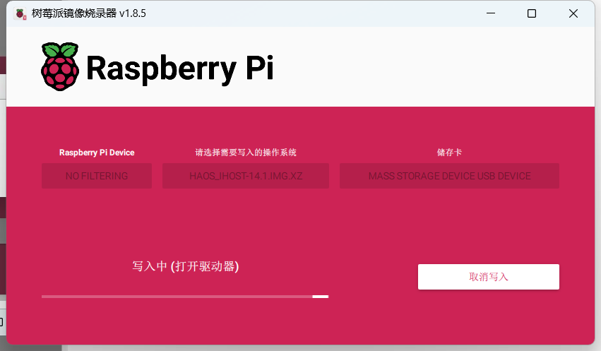 Home Assistant OS 极速版镜像文件烧录到 SD Card中,烧录过程中请不要操作 SD Card