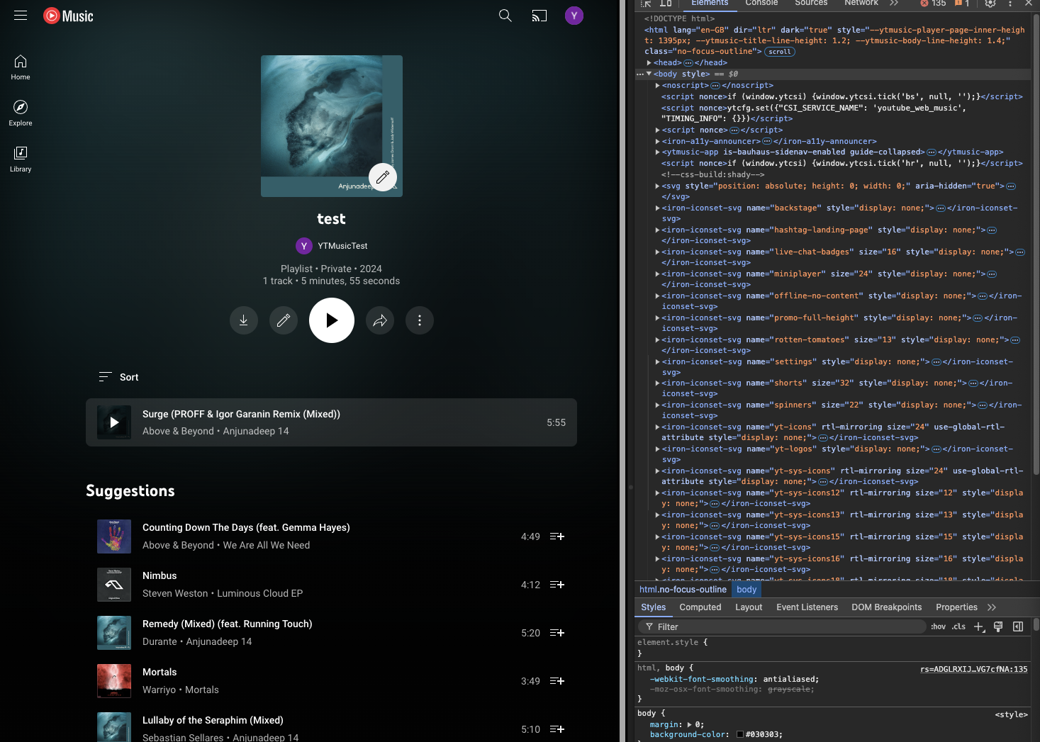 现在导航到 YT Music 中需要验证的页面,例如您的媒体库播放列表之一