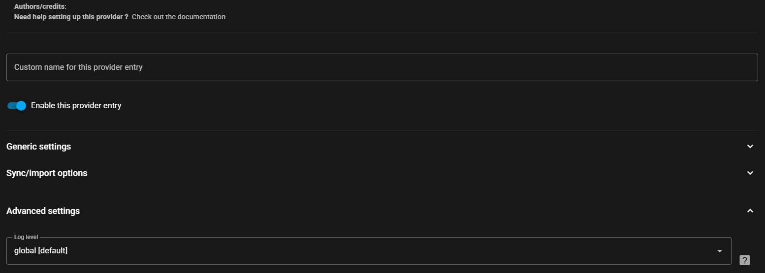 访问。所有提供者都可以被赋予自定义名称,并在必要时禁用。可以为所有提供者调整日志级别,这可以在高级设置中找到。(除非开发者要求,否则不要选择详细,因为它可能会对性能产生不利影响)。有关提供者特定设置,请参阅提供者页面。